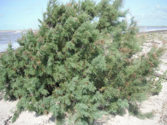 Collection Notes: between this location and 28.76193 and -95.63177 approx 1.75 miles in a strip about 200 yds wide a salt cedar is about every 100 yds. There are a few clumps of multiple bushes but majority are single bushes. This is Sargent Beach.
