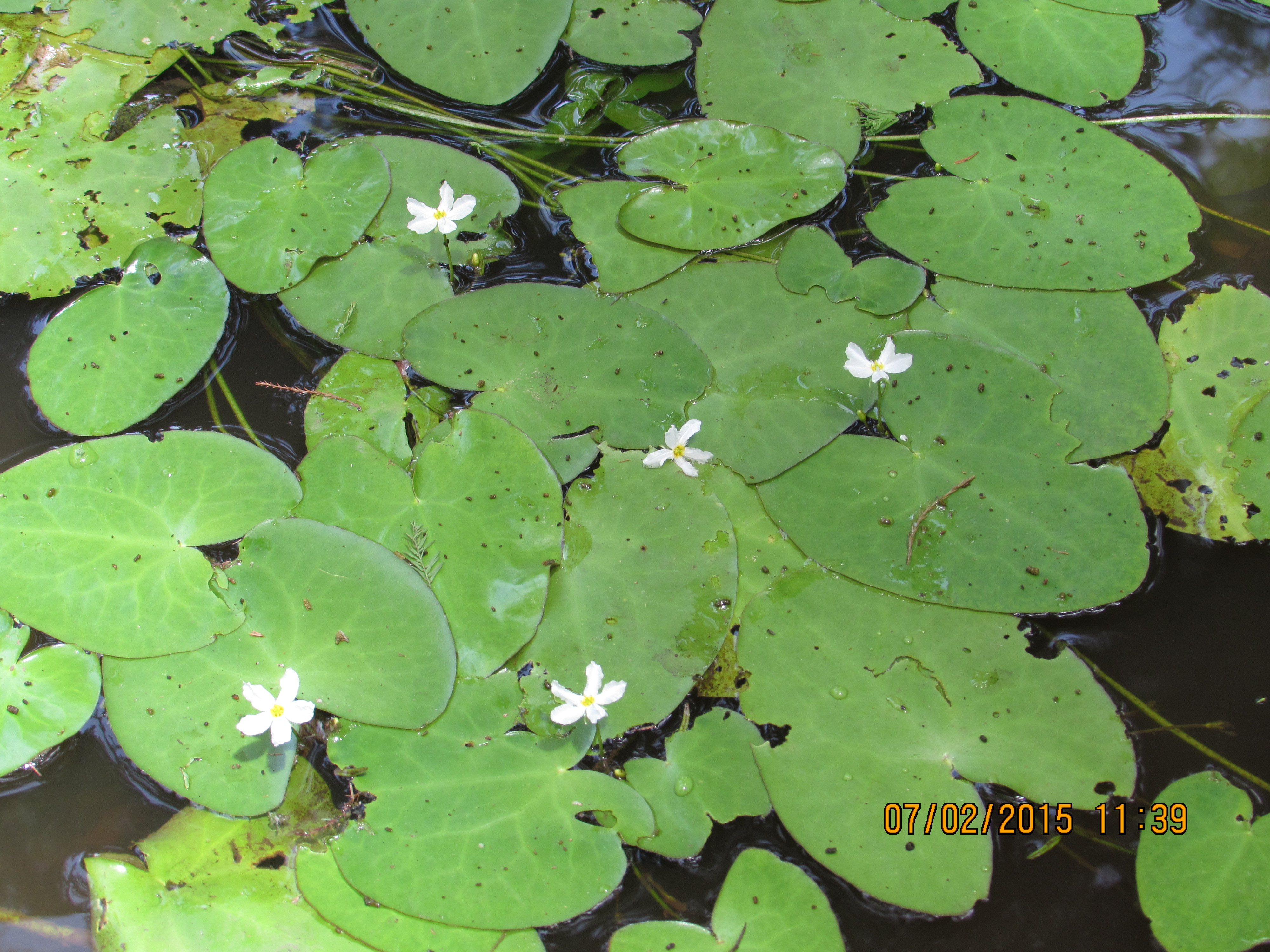 Collection Notes: Crested floating heart discovered in the Cathedral Area of Caddo Lake, Harrison County, Boat Road U. This patch was not pulled up or treated in any way. it was reported to TPWD (Tim Bister, Thomas Decker via e-mail) on this day.