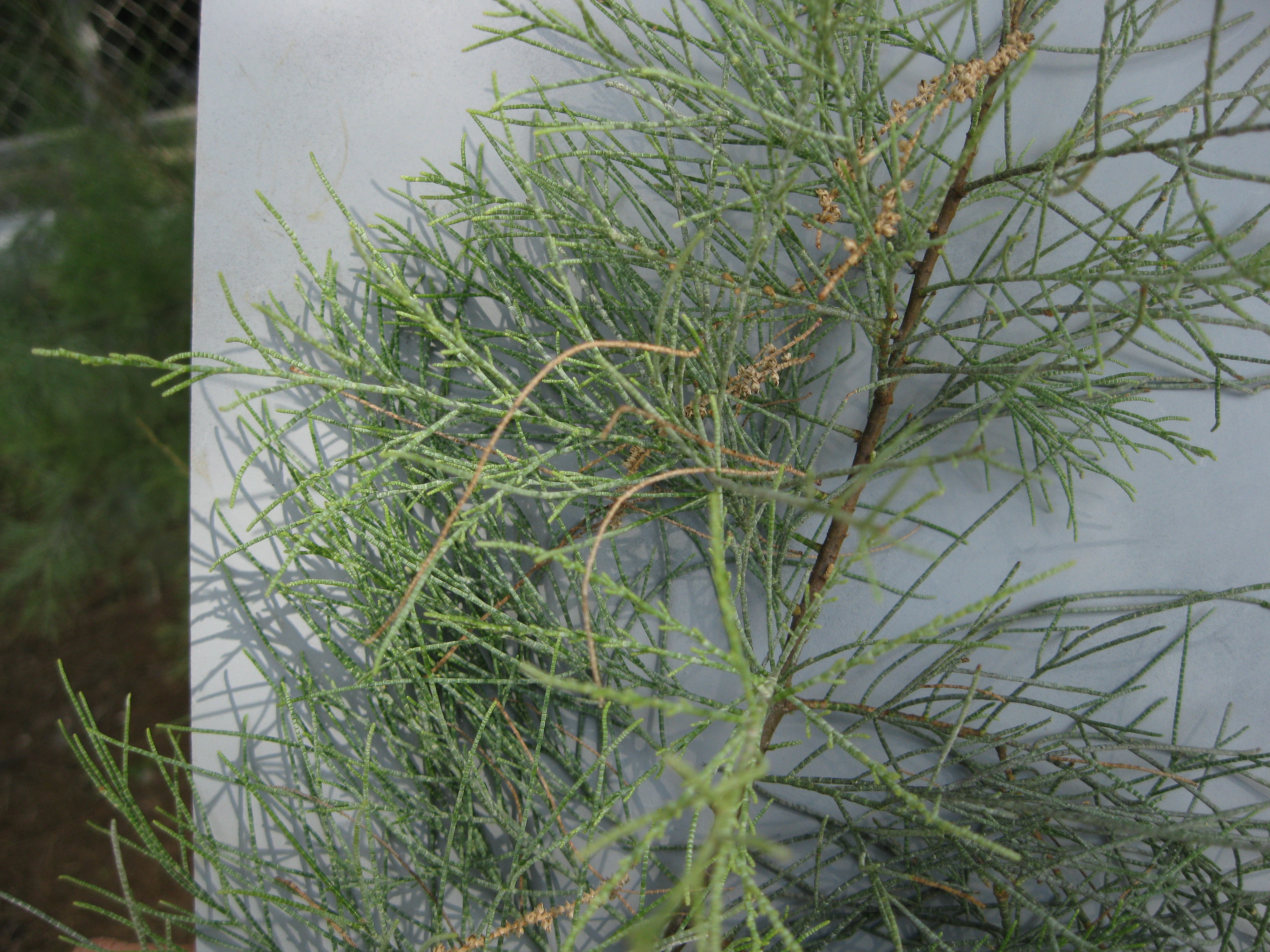 Collection Notes: TAMU-CC Oso Bay trail. Line of salt cedars appear to have been planted along a line on Oso Bay Trail. These are located behind the maintenance building along the fenceline. The substrate is devoid of vegetation. A thick layer of satl cedar leaves form the substrate.