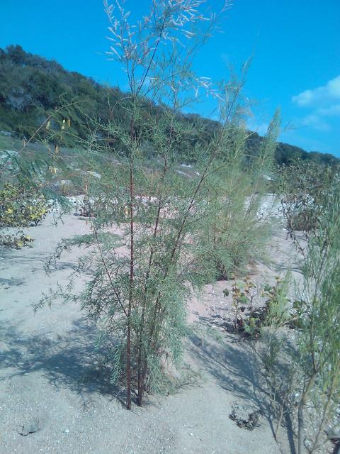 Collection Notes: 4 salt cedar trees from 2ft to 5 ft tall were found in the Pedernales river bed in Reimers Ranch park. They are in line spanning an area of about 100 yards. Plans are being made to remove them by park staff.