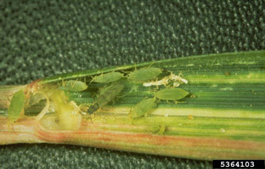 History: The Russian wheat aphid is native to the steppe country of southern Russia. It was first detected in North America near Mexico City in 1980, and was discovered near Lubbock,Texas in March 1986. By the fall of that year, infestations were reported in New Mexico, Oklahoma, Colorado, Nebraska, Wyoming and Kansas. These aphids spread rapidly throughout wheat-producing regions of the western United States and prove to be well adapted to the arid conditions of the High Plains. Following introduction, the Russian wheat aphid caused hundreds to millions of dollars in wheat and barley production losses through reduced yields and pesticide treatment costs. Annual direct yield losses peaked at $274 million in 1988 but dropped to less than $10 million by 1993. Russian wheat aphids still appears periodically across the High Plains in southwestern Wyoming, southeastern Nebraska, eastern Colorado, New Mexico, western Kansas, and the panhandles of Oklahoma and Texas.