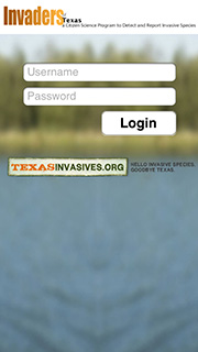 Once you have installed the TX Invaders app on your mobile divide, open the app and login using the same username and password you use to access your citizen scientist profile on the texasinvasives.org website.