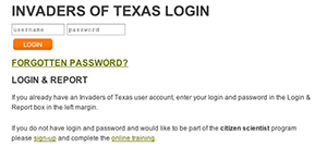 Be sure to write down your username and password in the space provided on the insight front cover of your Invaders Citizen Scientist Handbook